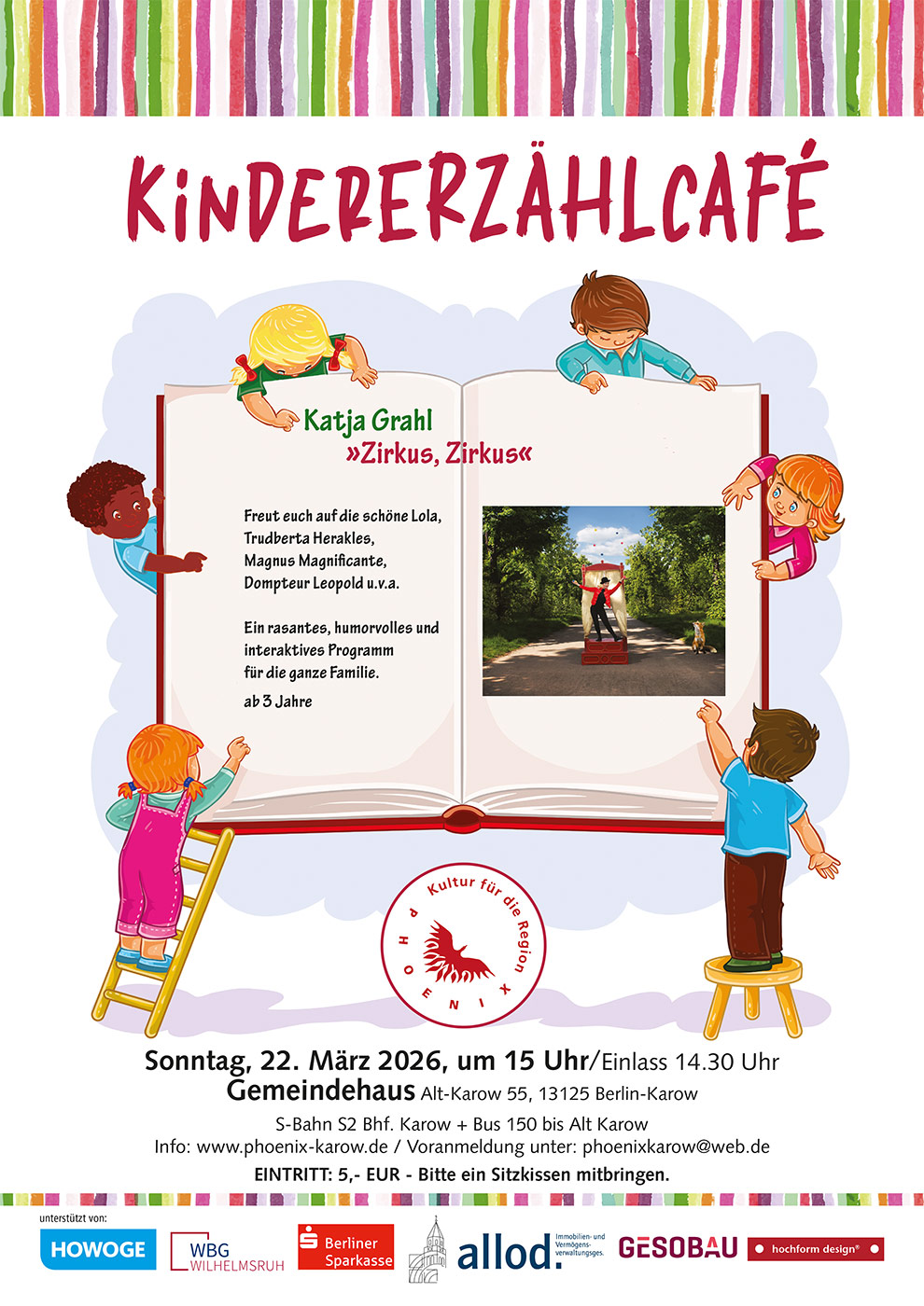 Zeit: So, 22.3.2026 Beginn: 15:00 Uhr Einlass: 14:30 Uhr Ort: Gemeindehaus Alt-Karow 55 13125 Berlin-Karow Eintritt: 5,- € Voranmeldung unter: phoenixkarow@web.de